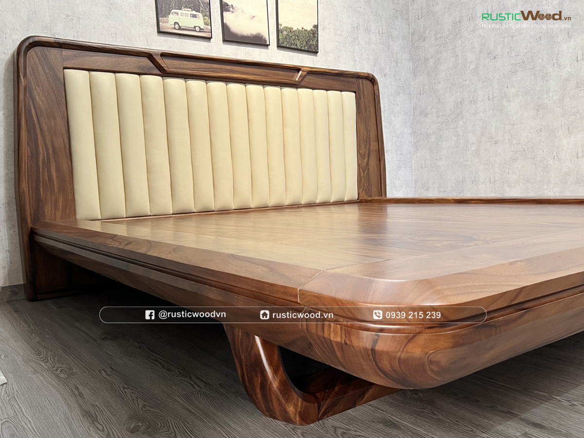 Giường được chế tác từ gỗ me tây nguyên tấm, nổi bật với: